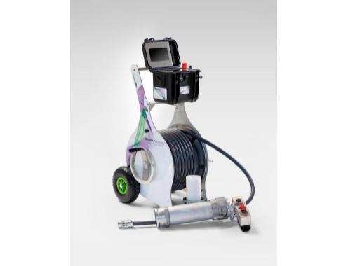 Det nye lyshærdningssystem består af et intelligent LED-hoved med 96 high-performance UV LED‘er, en 50 m lang fødeslange med integreret strøm og luftforsyning, en tilbagetrækningsenhed samt en kontrolboks.